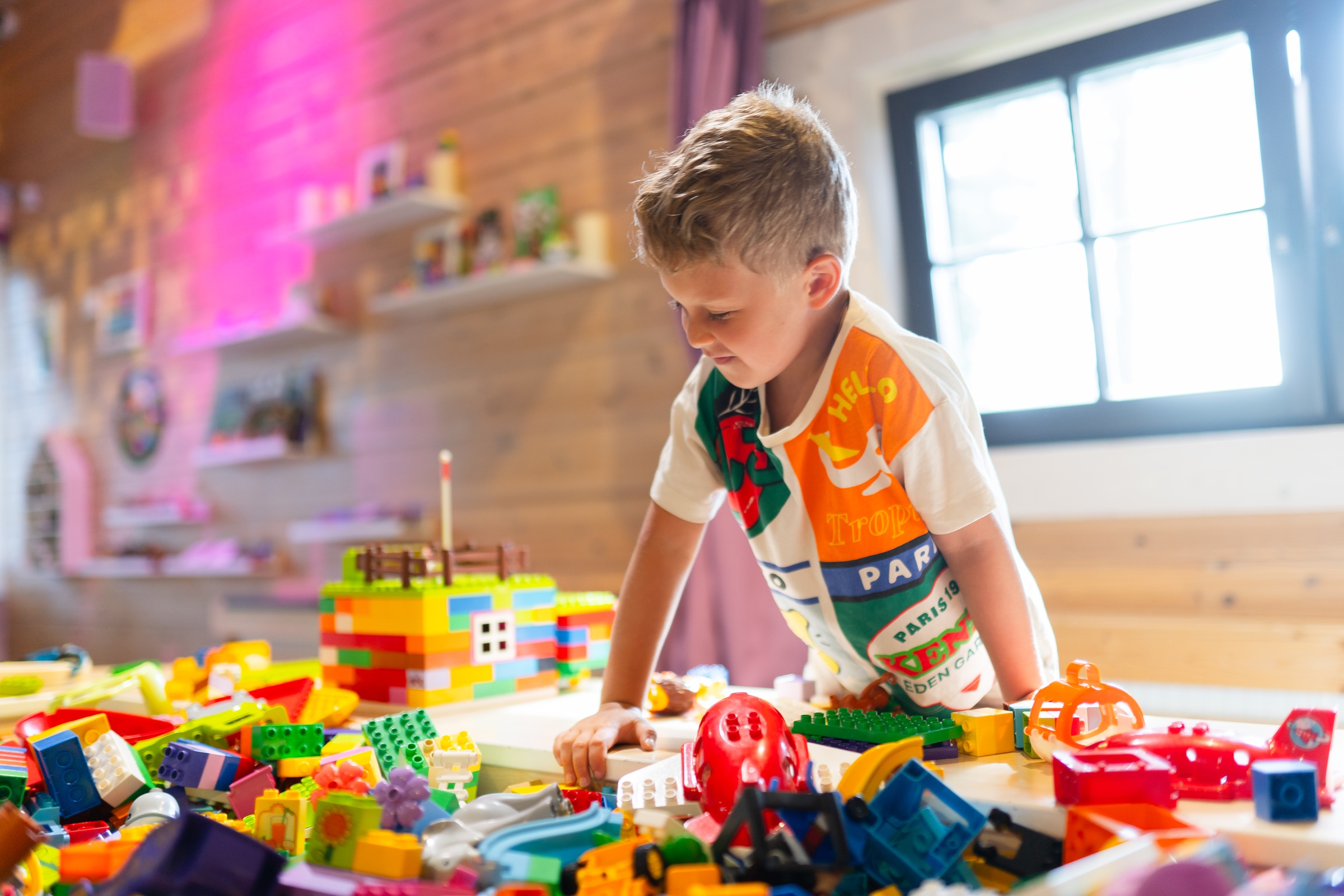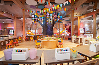 Дети в возрасте до 4 лет могут посещать детский клуб только в сопровождении взрослого. Наш клуб включает в себя 9 интерактивных зон, в том числе зону с гигантским сухим бассейном с горками и лабиринтами, островок для творчества, конструкторское бюро с лего, деревянную железную дорогу и домик в стиле шебби-шик. Малышей ждут игры, мастер-классы, внимательные и заботливые кураторы и, конечно, новые друзья.