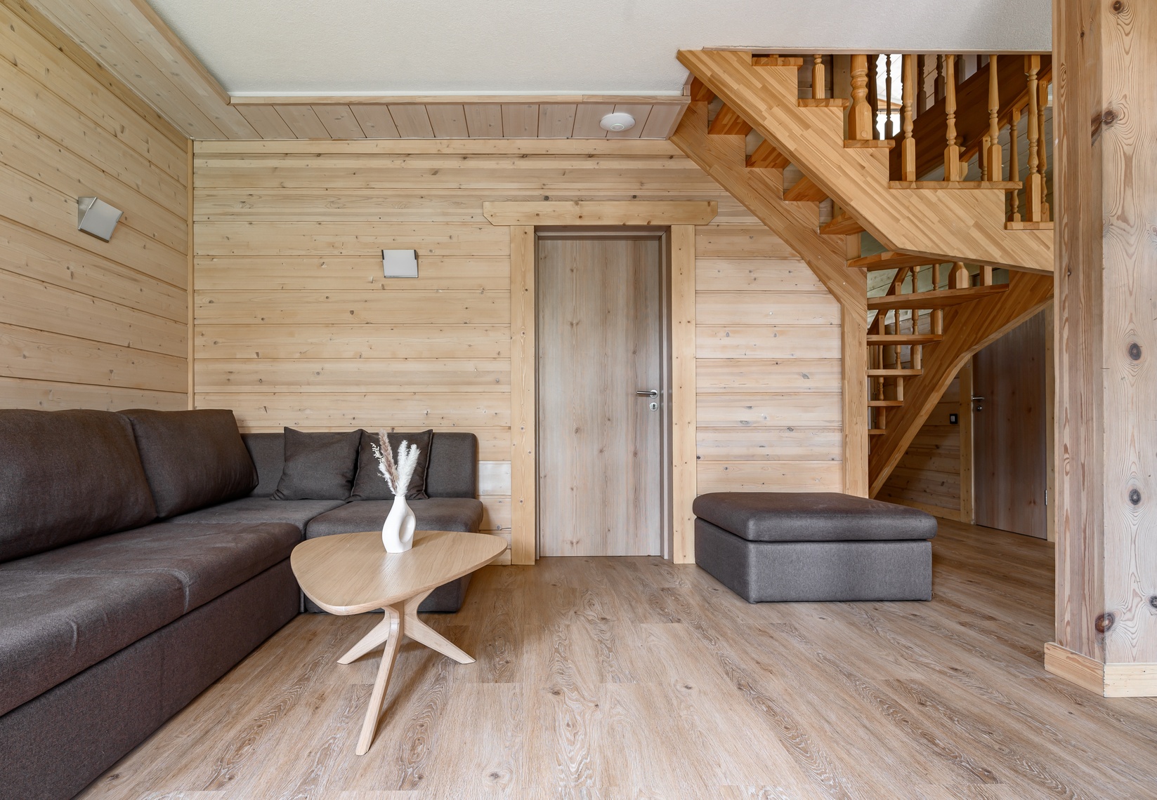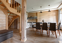 Двухэтажный коттедж вместительностью до 11 человек — идеальный выбор для большой компании. Просторная гостиная с камином и мягким диваном удобно соединяется с обеденной зоной и кухней. Мастер-спальни имеют выход на балкон или террасу. В патио расположена зона для пикника с мангалом-барбекю, уличной мебелью и детской площадкой.