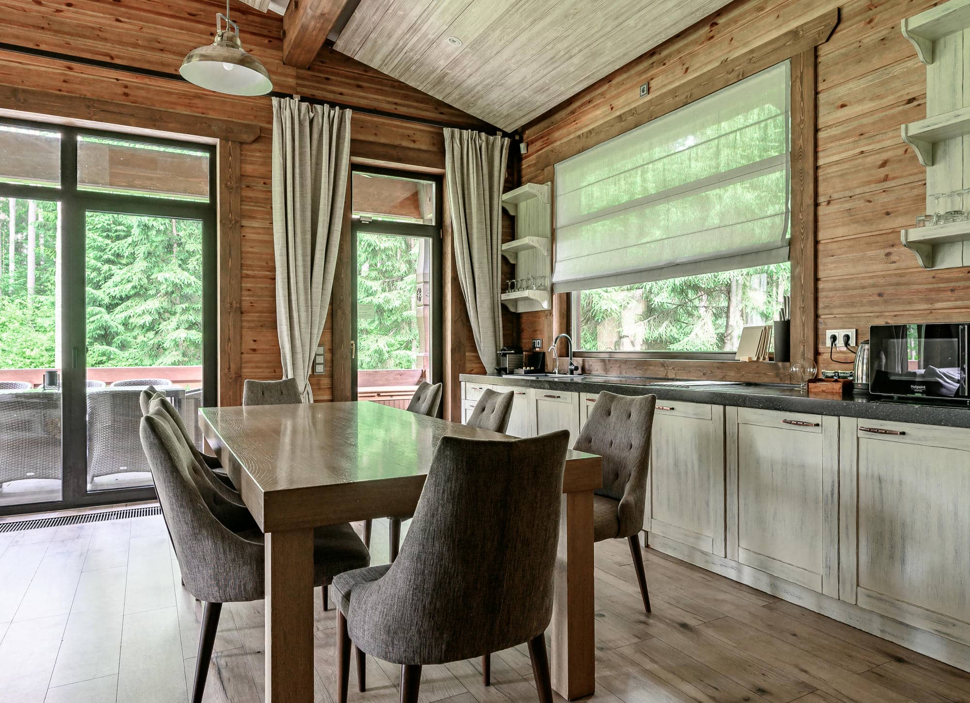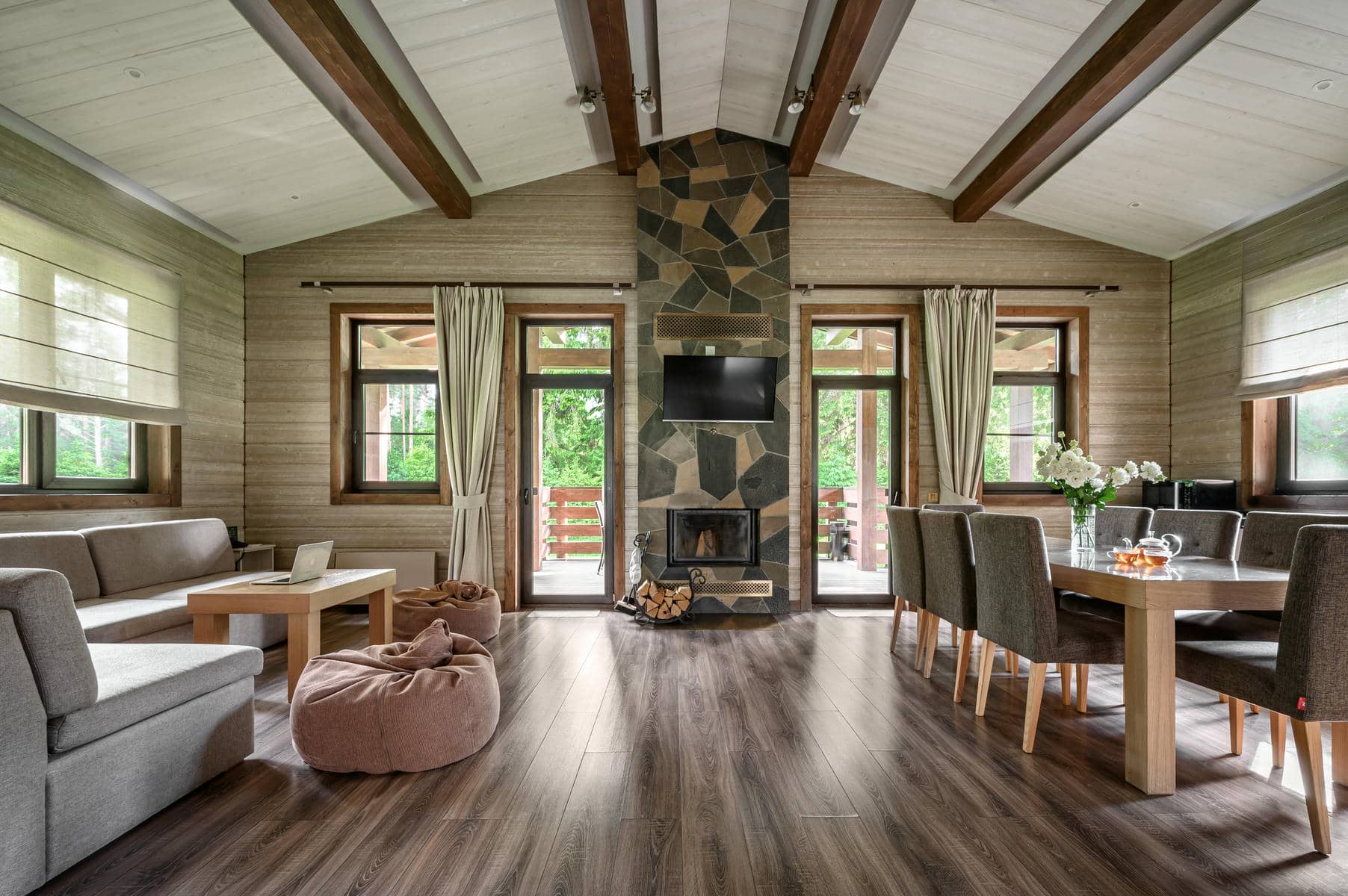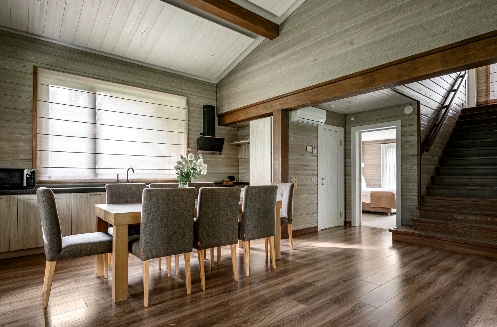 Большие двухэтажные коттеджи в альпийском стиле с просторной террасой, мангальной зоной и прилегающей территорией - олицетворение дома мечты, где можно собраться за большим столом, в гостиной сыграть в настольные игры, а у камина вести теплые разговоры.