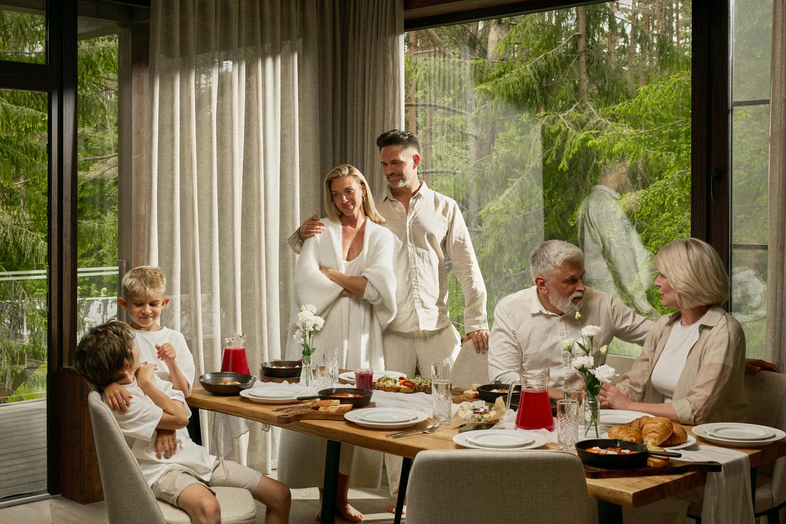 Прямо из вашего коттеджа вы можете мгновенно заказать рум-сервис из ресторанов, завтраки, доставку косметики, настольные игры и многое другое