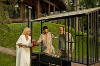 Индивидуальные мангальные зоны предусмотрены у всех типов размещения, кроме «Апартамент семейный», «Апартамент семейный с видом на лес», «Стандартный номер в отеле», «Улучшенный номер в отеле», «Делюкс», «Делюкс +»). Шампуры предоставляются в коттедж. За дополнительную плату можно приобрести решетки, розжиг, уголь.