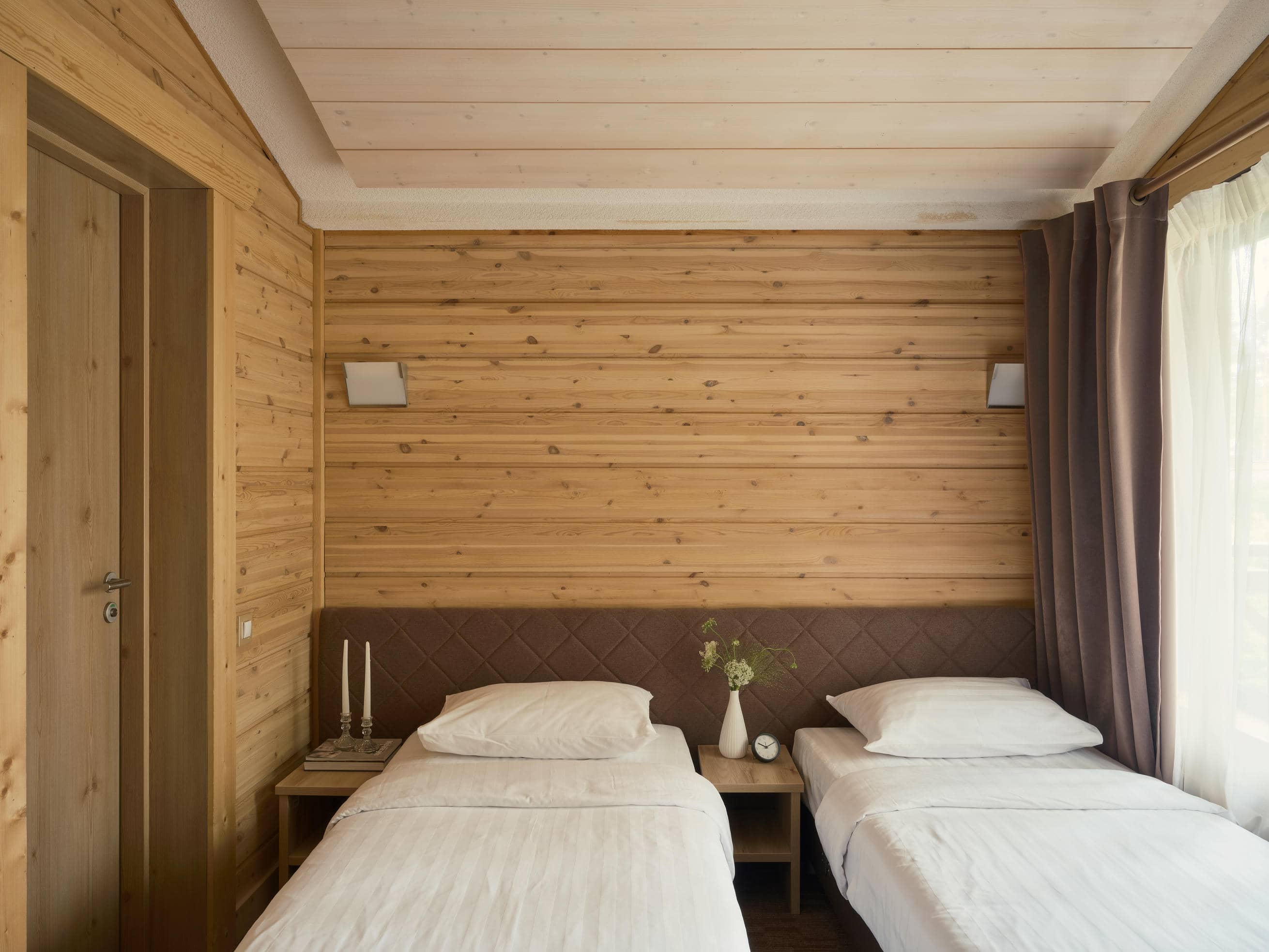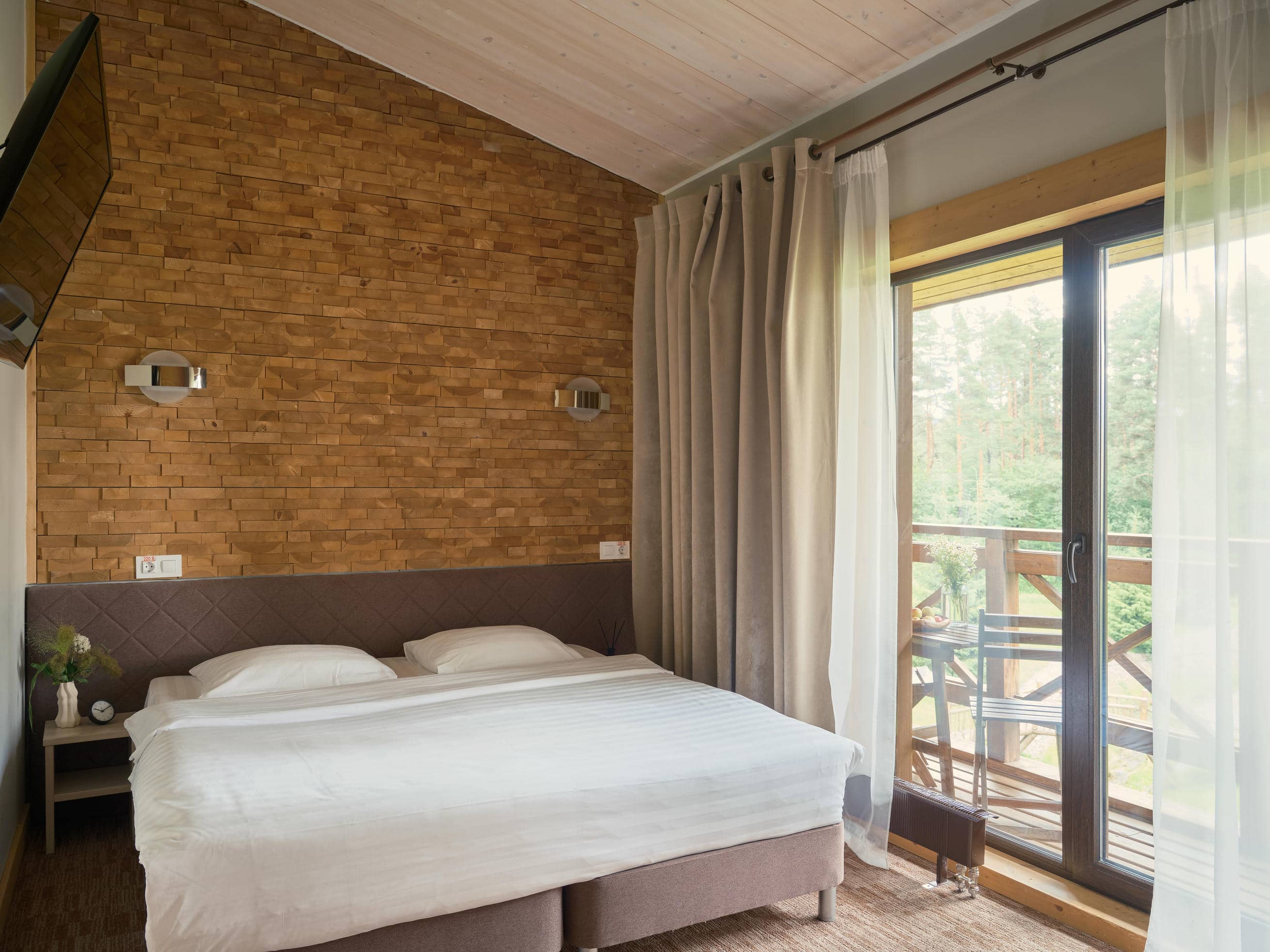 Гостям доступны два варианта размещения: улучшенный номер с видом на лес и стандартный номер с видом во двор, чтобы вы могли выбрать тот, который лучше всего соответствует вашим предпочтениям.