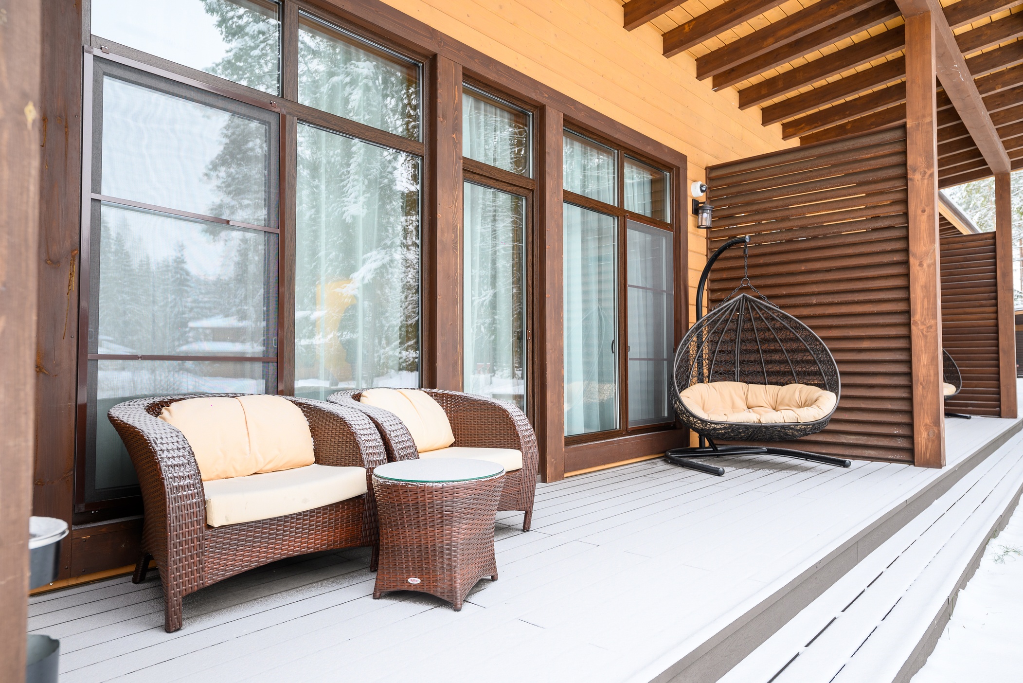 освещенная панорамная терраса с качелью